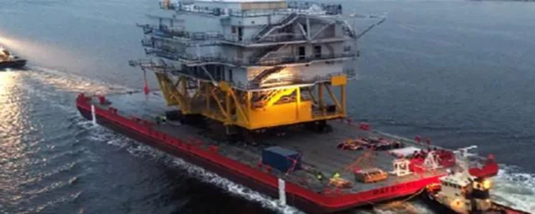 A specialised ballasting engineer flew in from Norway to de-ballast the barges enough to load the substations. Assisted by four SPTM vehicles and a chute, the substations were loaded and then welded onto the barges for safety.