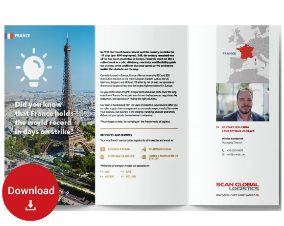 In 2018, the French temper led the country to go on strike for 114 days (per 1,000 employees). Even so, the country remained one of the most productive in Europe. As much as we love to have a coffee in a café; efficiency, responsiveness and flexibility guide our actions, so you can be sure that your products will arrive on time, no matter what obstacles are in the way.