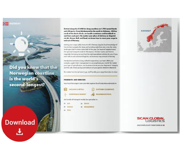 Along the 57,000 km of coastline, there are 1,700 named fjords and 200 ports. From Kristiansand in the south to Kirkenes, 400 km north of the Arctic Circle, we move containers and breakbulk cargo to and from all ports. No matter where your delivery location is or whether you are shipping by air, sea, rail or road, we know how to move your cargo in and out of Norway.