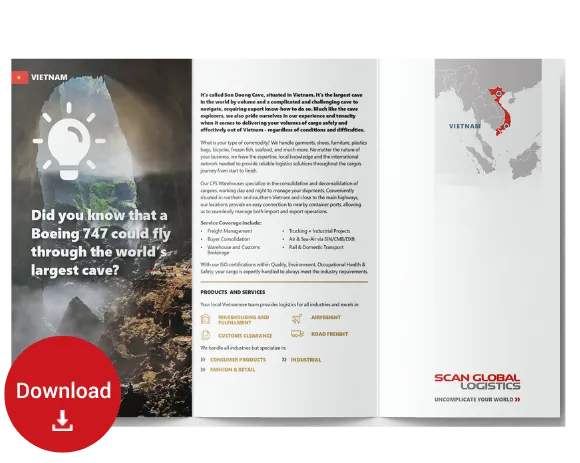 This is Son Doong Cave, located in Vietnam. It is the largest cave in the world by volume and a complicated and challenging cave to traverse, requiring specialized knowledge to do so. Just like cave explorers , we also pride ourselves on our experience and tenacity when it comes to delivering your cargo safely and effectively out of Vietnam, regardless of the conditions and difficulties.
