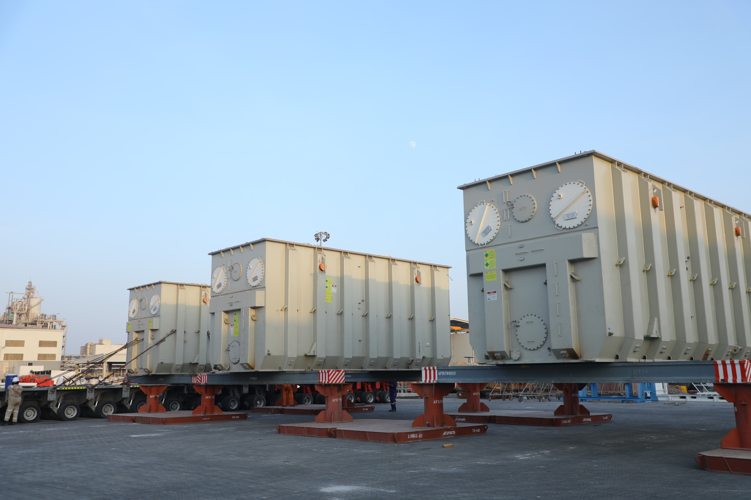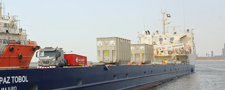 The transformers were shipped via multi-purpose vessels (MPVs) from Sweden and Brazil to Mina Zayed and Mugharraq ports. From there, they were transported to their final destinations either via direct road transport or a combined barge-road transportation via Mussafah port. Offloading onto the foundation and temporary storage area was also performed.