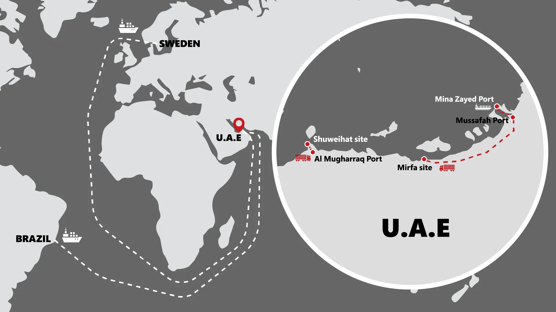 The additional general and oversized cargo was routed through Abu Dhabi/Khalifa port and delivered by road to the designated project locations.