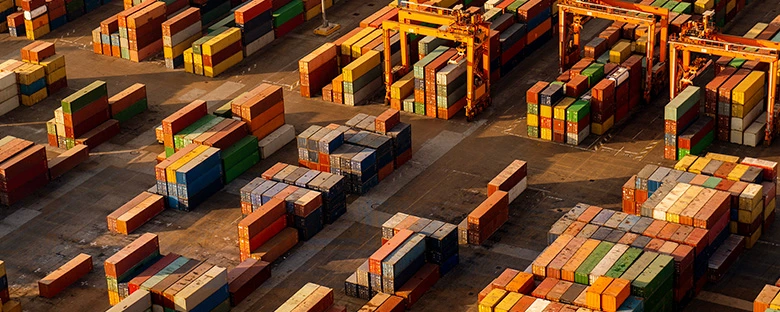 Containers waiting in port.