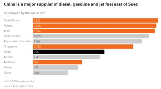 China is also Asia's 4th-largest exporter of so-called clean fuels, after South Korea, India and Singapore. Australia, Bangladesh, and the Philippines are particularly reliant on Chinese fuel supplies and will have to cover their needs elsewhere.