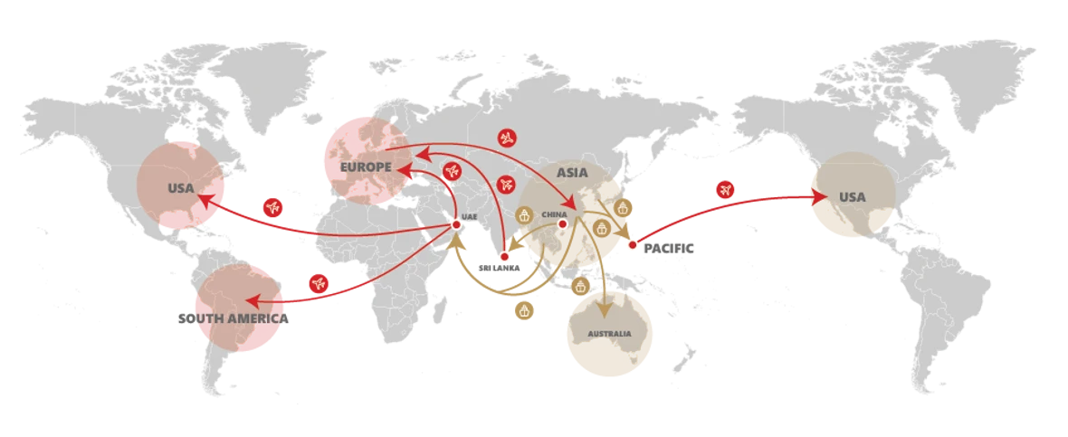 Your goods are effectively and timely delivered from Asia to Europe and the US via our Sea-Air gateways strategically located around the world.